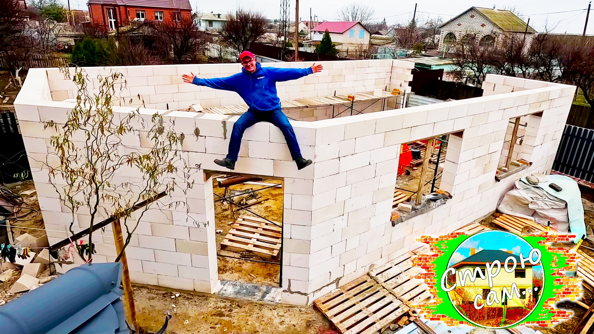 ОДИН ЗА ОТПУСК поднял СТЕНЫ ЗДАНИЯ 7х12,5 м. Строю сам...