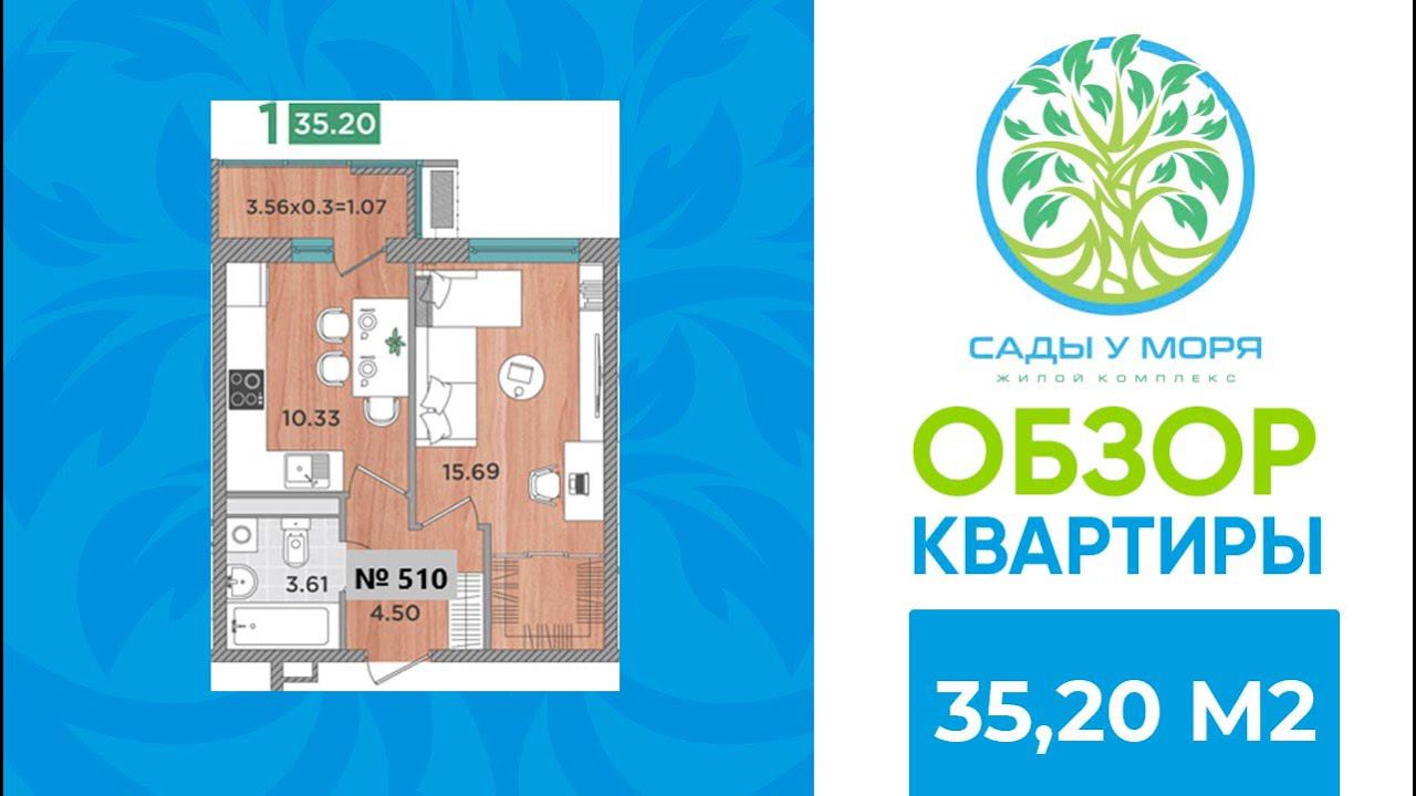 Обзор однокомнатной квартиры в ЖК "Сады у моря" 35,20 кв.м.