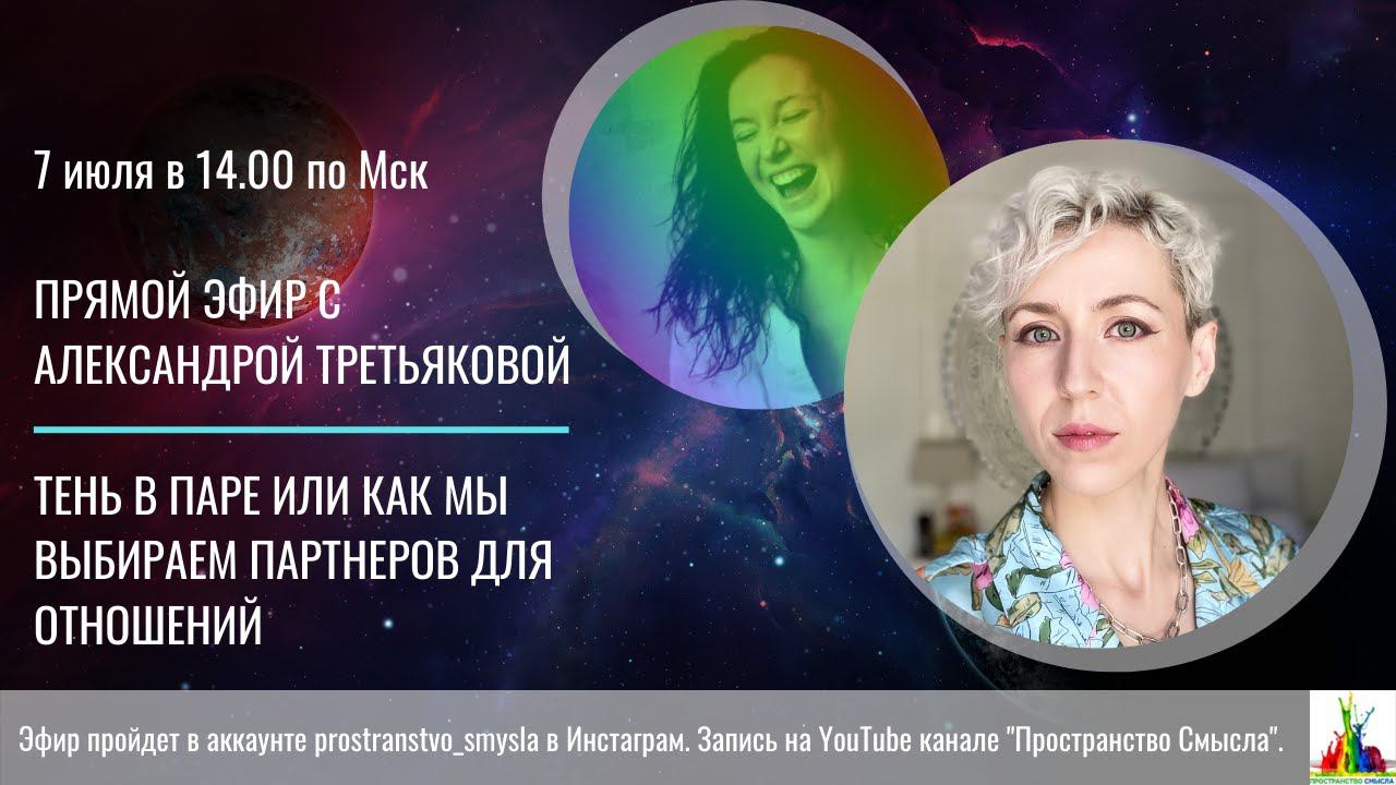 Разговор на тему теневых аспектов в партнерских отношениях прошел в Инстаграм-аккаунте "Пространство Смысла": https://www.instagram.com/prostranstvo_smysla/ Поговорили о том: - как мы зачем мы выбираем партнеров - какие процессы в нас запускают наши тени - какие образы партнера мы создаем в своей голове - как мы повторяем семейные сценарии в отношениях - как постепенно всплывают скрытые травмы и паттерны поведения - как со всем этим обходиться и нужно ли это «лечить» и «прорабатывать» Александра Третьякова — женщина-вода, река, океан и начало. Интуитивный терапевт, сертифицированный преподаватель тета-хилинга, квантового слушания и телесных практик, специалист по ориентированной на решение краткосрочной терапии. Неоднократно выступала на фестивале «Пространство Смысла» и всегда являлась для меня воплощением женственности и темы отношений, несмотря на то, что долгое время посвятила работе с тяжелыми диагнозами. 10 июля у Александры стартует онлайн-курс про отношения: https://liveintegrity.ru/heart