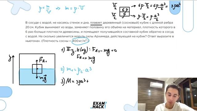 В сосуде с водой не касаясь стенок и дна плавает деревянный сосновый кубик с длиной - 23048