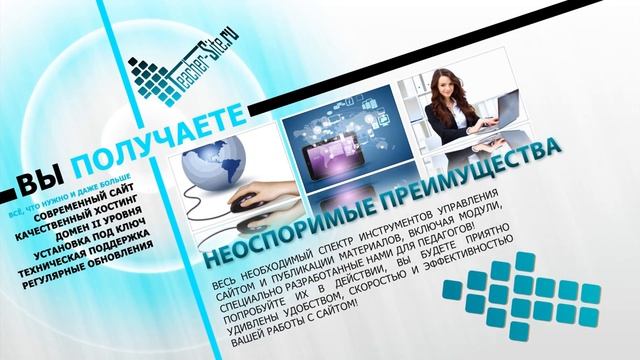Уважаемые педагоги! Позвольте представить вам проект «Каждому учителю -- профессиональный сайт». Уверены, он поможет вам по-новому взглянуть на процессы создания и сопровождения собственного профессионального сайта. Мы разработали уникальный программный инструмент, обладающий широкими возможностями, работать с которым не сложнее, чем с текстовым редактором или социальной сетью. Особенностью нашей системы является простота и понятность. Несмотря на внушительный список возможностей, работать с сайтом Вам будет легко и удобно. Здесь нет сложных администраторских панелей со множеством кнопок, настроек и параметров. Вам не придется осваивать запутанные системы управления контентом - на Вашем сайте их просто не будет! Все материалы, статьи, публикации, графические элементы можно редактировать (добавлять, изменять, удалять) прямо на странице, где они располагаются! Вы меняете элемент сразу там, где его видите, и тут же имеете возможность оценить результат. Что может быть проще?! Структурой и дизайном сайта управлять так же просто, как и его содержанием. Вы сами определяете состав разделов и подразделов своего сайта и меняете его в любое время всего несколькими простыми и понятными действиями. Попробуйте испытать наш уникальный продукт в действии! Вам обязательно понравятся мощь и функциональность в сочетании с доступностью, понятностью и удобством работы! Отныне на пути реализации любых Ваших идей и задумок больше не стоят технические ограничения или недостаточные знания в области сайтостроения, а размещение очередного материала занимает времени не больше, чем написание сообщения в социальной сети! Творите свободно! Реализуйте свой профессиональный и творческий потенциал на просторах Интернет! А беспрецедентно низкая цена за создание сайта (включая регистрацию доменного имени второго уровня (вида ВАШ-САЙТ.RU) и качественный платный хостинг) Вас только приятно удивит! Присоединитесь к проекту и начните новый интересный и яркий этап Вашего педагогического пути! Подробнее о предложении здесь: http://teacher-site.ru Ознакомительная версия сайта, работающего на нашей системе находится здесь: http://demosite.teacher-site.ru По всем вопросам обращайтесь: e-mail: info@teacher-site.ru Skype: teacher-site С глубоким уважением и пожеланиями плодотворного сотрудничества, команда проекта "Каждому учителю - профессиональный сайт"