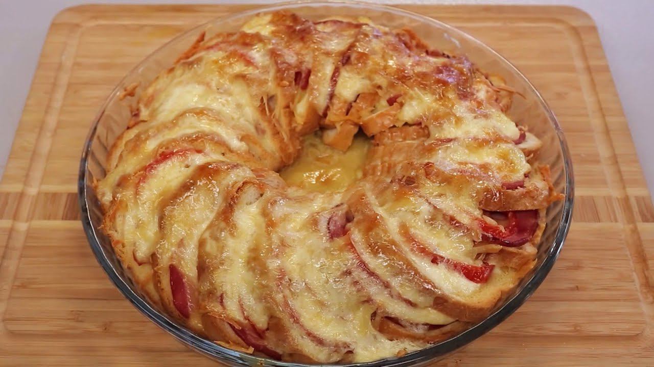Яичный коблер с ветчиной и сыром из батона. Блюдо по рецепту «Ночного дожора» с обычным «Нарезным» хлебом. #Яйца #Коблер