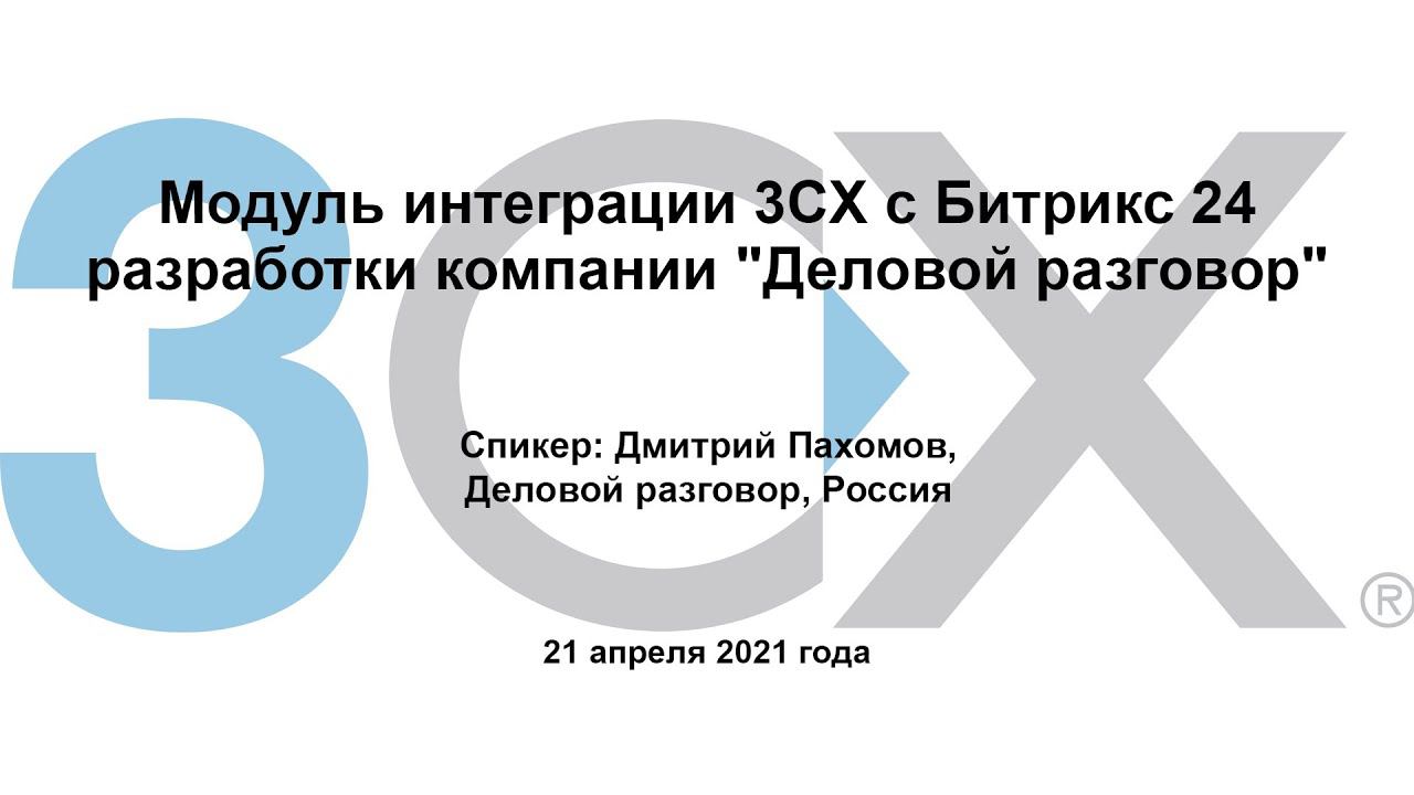 Компания "Деловой разговор" — Титановый партнер 3СХ — разработала модуль расширенной интеграции IP-АТС 3CX с Битрикс 24. Это полнофункциональная интеграция двух систем. Подробнее: https://ipmatika.ru/press/news/42945/ https://ipmatika.ru/press/news/46249/ Модуль расширенной интеграции работает на стороне сервера. Можно выделить следующие составные части модуля: - журналирование звонков и открытие/создание карточки лида/контакта при входящем вызове; - управление входящей маршрутизацией на IP-АТС 3CX на основе данных, заданных в Битрикс 24; - "прилипание" звонка к последнему сотруднику на непродолжительное время; - передача в Битрикс 24 файл записи разговора в формате .mp3, что позволяет прослушать его непосредственно из карточки контакта (компании/лида). Модуль может также использоваться как базовая платформа для интеграции 3CX с другими CRM-системами.