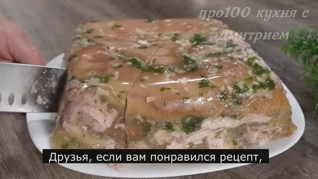 Привет друзья!Добро пожаловать на наш канал!?.?!?. Рецепт приготовления и ингредиенты: Свиные уши 1,2 кг (8 шт.). Заливаем водой и варим на медленном огне 3 часа. 6 куриных ножек. Залейте водой, добавьте 1/2 столовой ложки соли и варите на слабом огне 1,5 часа. После того, как вода закипит, снимите пену. 1 столовая ложка соли. 1/3 чайной ложки черного перца горошком. 4 лавровых листа. 1 луковица. Через 1,5 часа. Снимите с мяса кожу. Удалить кости и лишний жир. 3 часа спустя. Выложите готовые свиные уши на тарелку. В чашку налейте 300 мл приготовленного бульона из свиных ушей. Добавьте 150 мл куриного бульона. Мелко нарезаем 6 зубчиков чеснока. Измельчите чеснок. Добавьте в бульон. Нарезаем пучок петрушки. Добавьте в бульон петрушку. Смешивание. На дно стеклянной посуды налейте 150 мл бульона. Поместите свиные уши. Сверху выложите слой отварной курицы. Поместите 2 свиных уха. Влейте 100-120 мл бульона. Добавьте еще один слой курицы. Добавьте 2 свиных уха. 80-100 мл бульона. Добавьте оставшееся куриное мясо. Влейте бульон. Последний этап. Накрыть свиными ушками. Вылейте бульон на поверхность мяса. Накройте пищевой пленкой. Поставьте в холодильник на ночь. Приятного аппетита! Друзья, если вам понравился рецепт,дайте знать в комментариях, подписывайтесь и ставьте лайк ?.Готовим для Вас с любовью! ???.