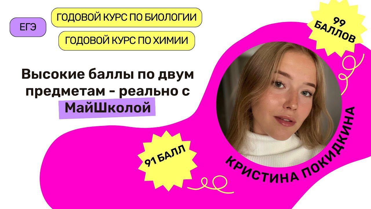 Отзыв Кристина Покидкина 91 балл ЕГЭ 2023 | Майшкола #егэ #биология Записывайся на актуальные курсы подготовки к ЕГЭ по Биологии здесь: https://clck.ru/359pZ9 МайШкола это: - Опытные преподаватели, которые в совершенстве знают структуру ЕГЭ и каждый год сдают ЕГЭ по своему предмету, чтобы почувствовать себя на месте ученика - У нас авторская программа подготовки, показавшая свою эффективность на результатах ЕГЭ более 3000 учеников - 80 – средний балл учеников на ЕГЭ по Биологии Подписывайся на канал, чтобы не пропустить новые видео и эфиры! https://www.youtube.com/channel/UCq4KDNX4OsLFoOGQjePYWOA?sub_confirmation=1 ► Инстаграм Алены: https://www.instagram.com/alenabiology ► Телеграм-канал: https://t.me/alenabio ► Группа ВК: https://vk.com/public67153074
