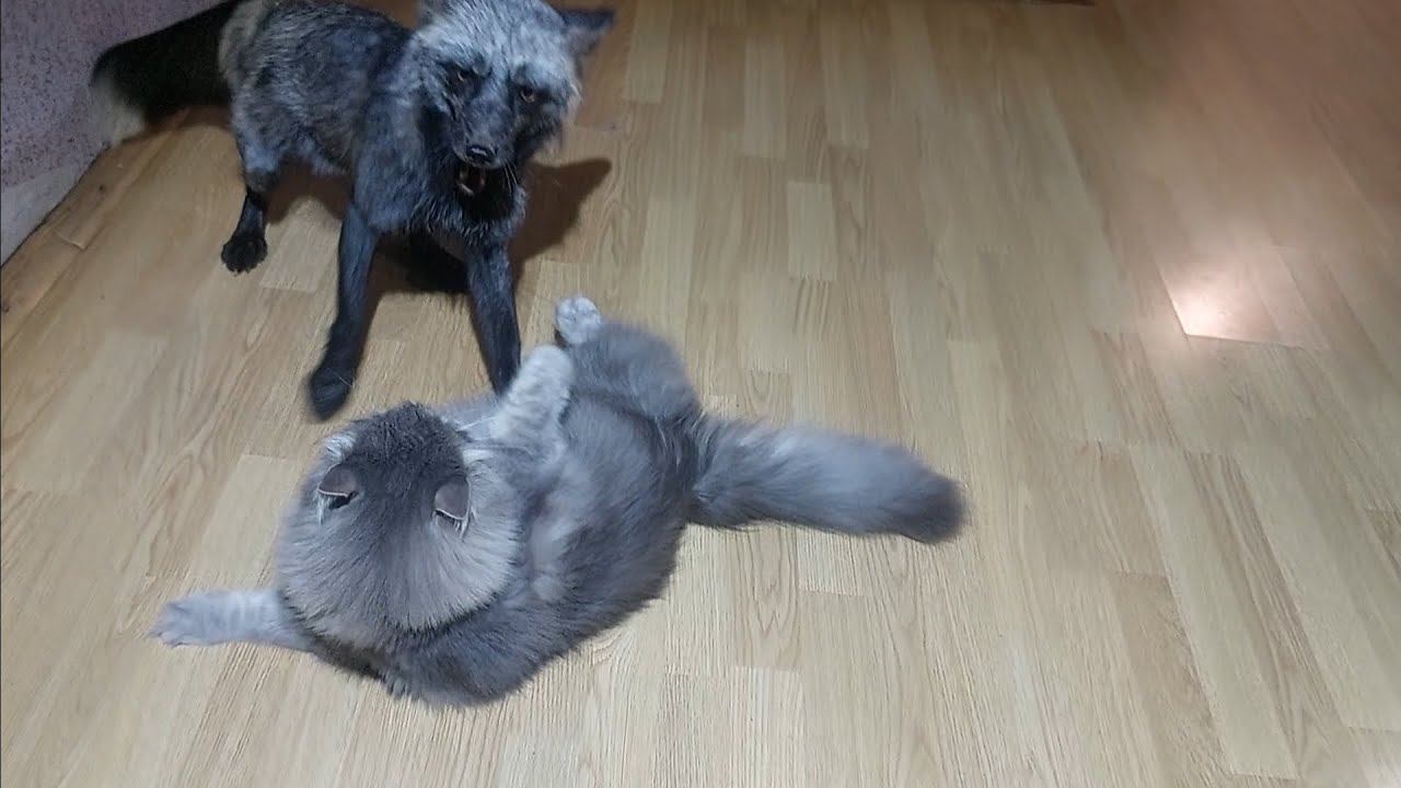 Кот подрался с лисой
