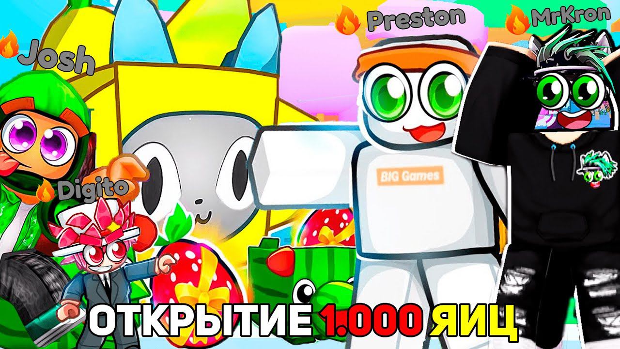 ОТКРЫВАЕМ 1000 FRUIT EGGS ВМЕСТЕ С Preston, Josh, Digito В Pet Simulator 99 РОБЛОКС @BuildIntoGames