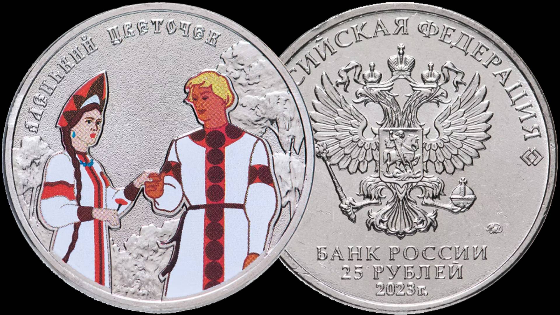 Монета 25 рублей Аленький цветочек в цветном исполнение