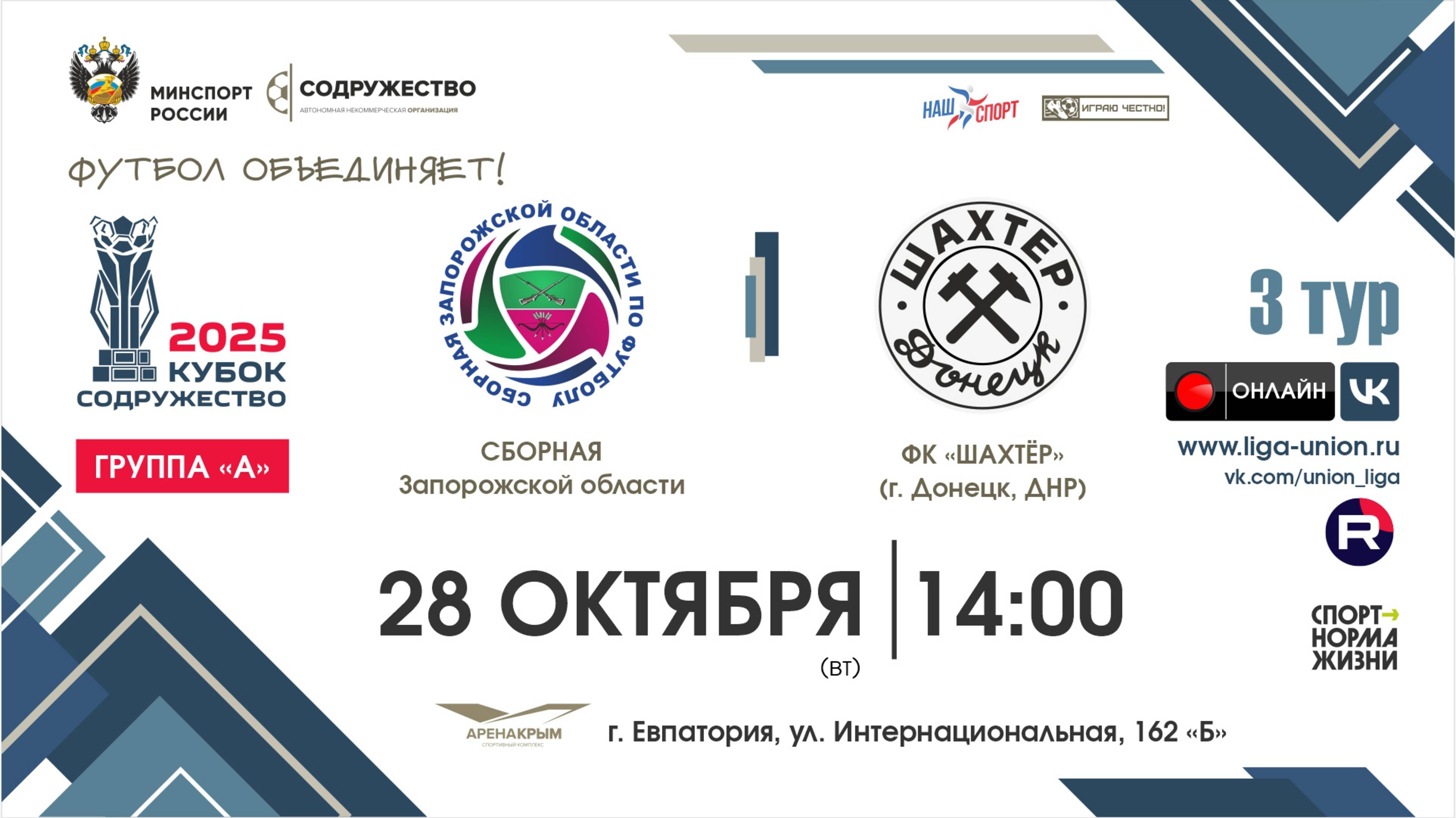 II Кубок "Содружество" | 3 тур (Группа «А») | СЗО – ФК "Шахтёр" (Донецк) | 28.10.2025