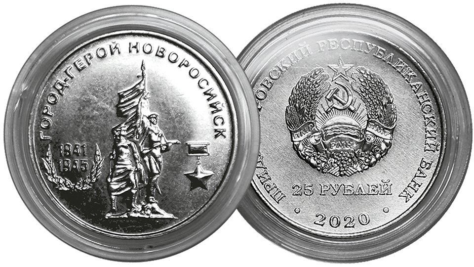 Монета 25 рублей Приднестровья Город-герой Новороссийск.