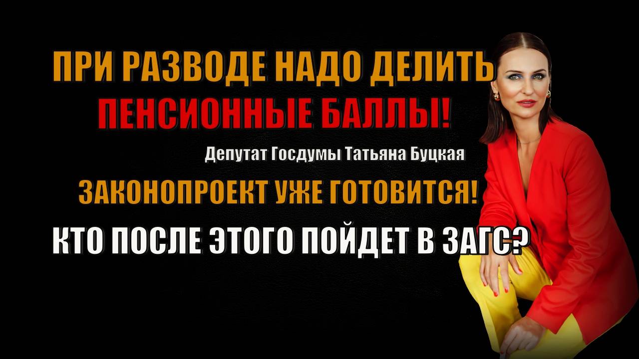 В Госдуме предложили делить пенсионные балы при разводе! Инициатор Буцкая... Такие новости.. В Госдуме разрабатывается законопроект, который позволит разделить поровну между супругами пенсионные баллы в случае развода. Он будет касаться семей с детьми, где один из родителей был в декретном отпуске, отметила первый зампред комитета ГД по защите семьи, вопросам отцовства, материнства и детства Татьяна Буцкая. Ссылка на пост Буцкой - https://dzen.ru/b/Z4KtImq2H2FkdYvP Читать и смотреть меня можно еще и здесь 👇👇👇 Ссылка на группу ВК - https://vk.com/toxiclawyer Ссылка на Дзен - https://dzen.ru/id/5ea5a0e9c9c7e01bd613d1d8 Ссылка на Дзен (второй канал) - https://dzen.ru/id/5b1f7c114826776dc0991e01 Ссылка на Платформу - https://plvideo.ru/channel/HHfDhhxBDlSJ Рутуб - https://rutube.ru/channel/23488284/ Кто хочет поддержать канал, может приобрести мой сборник стихов - ссылка на приобретение сборника - https://vk.com/public204382471?w=product-204382471_7390862%2Fquery