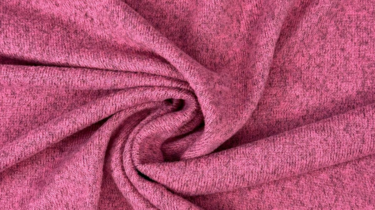 Вязаный трикотаж сандра цвет помада с меланжевым эффектом. Мягкое трикотажное полотно малой плотности (220 гр) с высокой эластичностью. Ниспадает, струится, закладывается в тонкие складки. Не дает усадку. Край не сыпется, но требует обработки. Хорошо тянется и возвращается в исходную форму. Что шить: водолазки, лонгсливы, футболки, юбки, брюки, домашнюю одежду. Уход за тканью: - бережная машинная или ручная стирка при температуре 30 градусов; - отжим на минимальных оборотах; - сушить в расправленном виде; - утюжка на минимальном температурном режиме; - не отбеливать.
