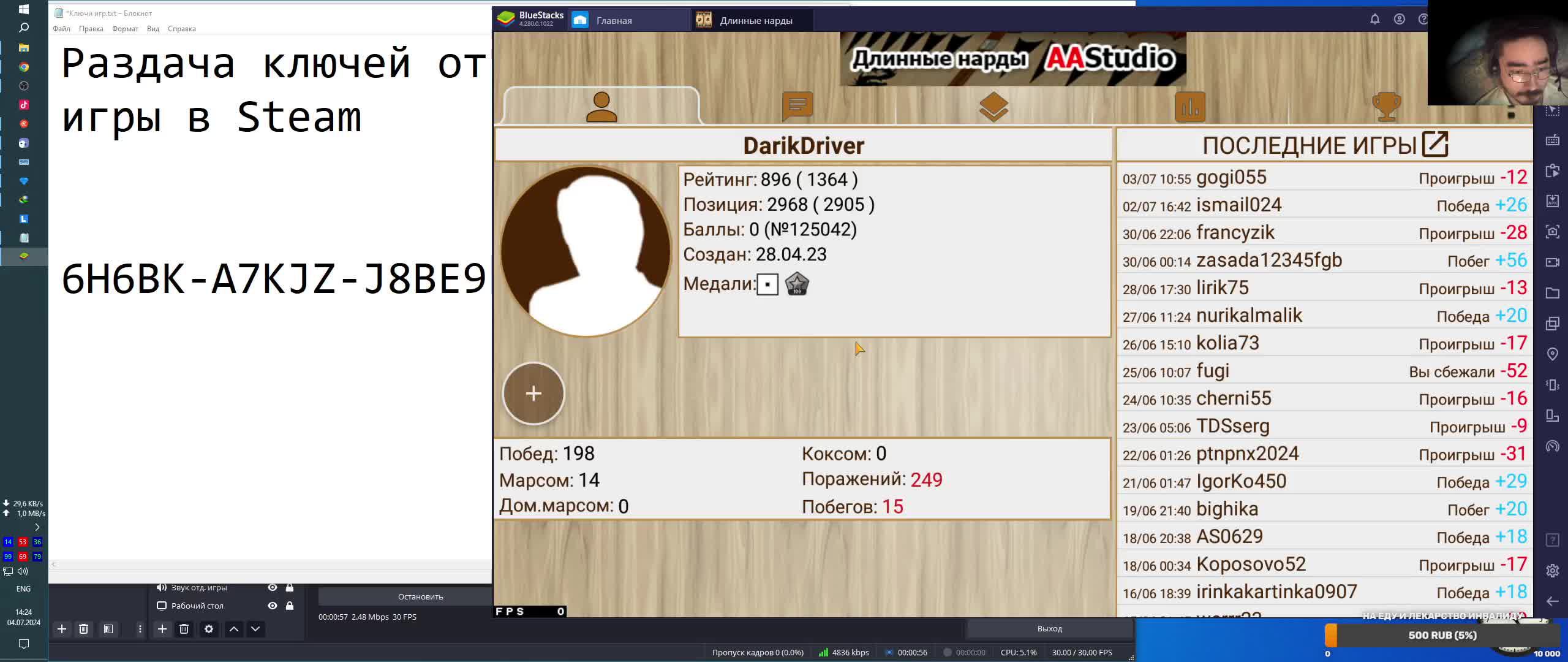 Раздача ключей от игры в Steam