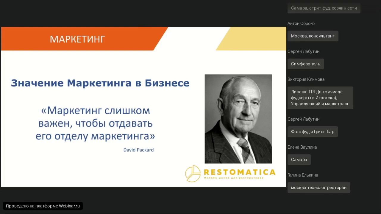 «Маркетинг - значение в бизнесе, позиционирование, уникальность, маркетинговый микс для ресторана» спикер: Сергей Добров (Руководитель онлайн школы для рестораторов restomatica)