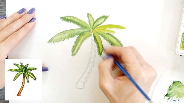Как нарисовать пальму карандашом и акварелью | Рисунок поэтапно и легко для детей