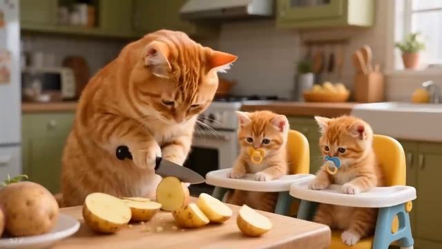 Мультфильм для детей ,семья котят готовят ужин