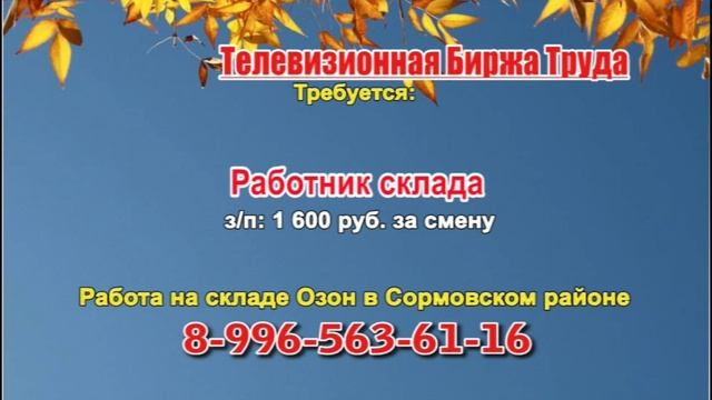 Вакансии и телефоны прямых работодателей в специализированной программе по трудоустройству "Телевизионная Биржа Труда" - г.НИЖНИЙ НОВГОРОД
