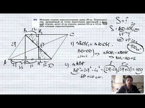 №504. Меньшая сторона параллелограмма равна 29 см. Перпендикуляр, проведенный из точки пересечения диагоналей к большей стороне, делит ее на отрезки, равные 33 см и 12 см. Найдите площадь параллелограмма. TikTok - https://vm.tiktok.com/WJJwK9 Like - https://likee.com/user/@ge0metriya Мой второй канал для подготовки к ЕГЭ и ОГЭ - https://www.youtube.com/ЕвгенийСумин Инстаграм - https://www.instagram.com/EGE_OGE.math Личный инстаграм - https://www.instagram.com/ee_sumin VK - https://vk.com/evgeniysumin FB - https://www.facebook.com/EvgeniySumin