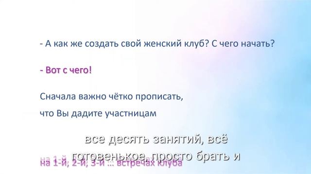 Вот ссылка на видео "Как создать свой Женский клуб. С чего начать?" - https://youtu.be/Cp9uenBOO6k Вопросы можно задать автору курса -Людмиле Мызиной по ватсапп +79224118718 или по эл.почте - boss1@ludmilamyzina.com. Обязательно отвечу!
