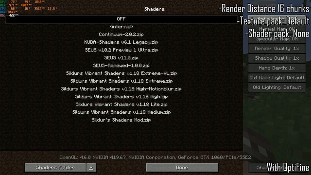 GTX 1060 6GB | i7 8750H | MINECRAFT FPS TEST (WITH SHADERS AND TEXTUREPACKS) 1080p60