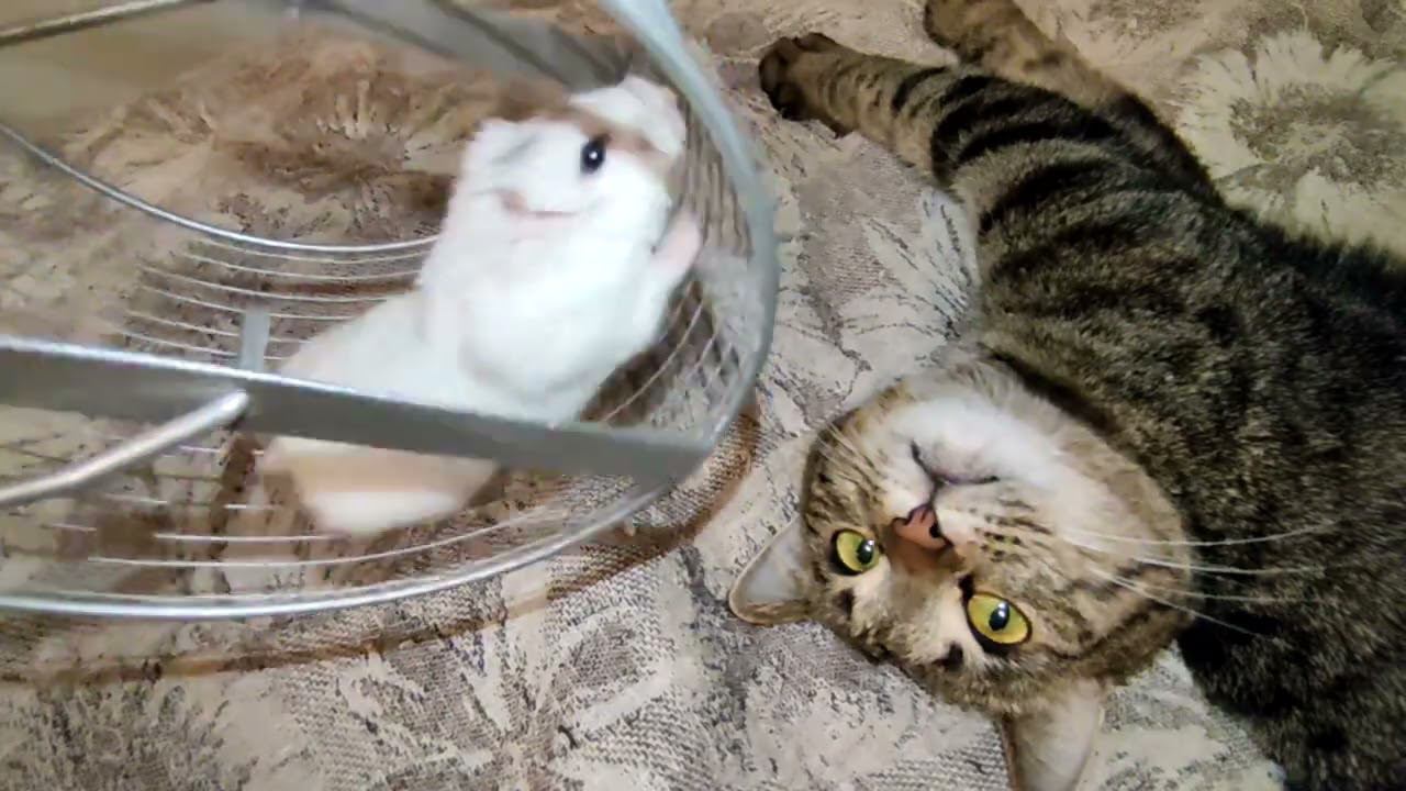 ЗАИНТЕРЕСОВАЛСЯ ПУШИСТЫМ.................. #грызун #джунгарскийхомяк #сирийскийхомяк #хомяк #хомячки #кошка #котик #котёнок
