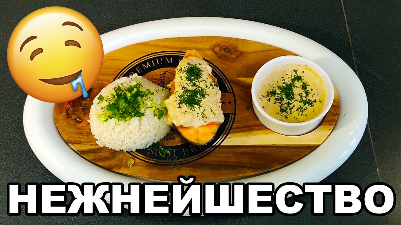 Сёмга гриль с отварным рисом и сливочным соусом