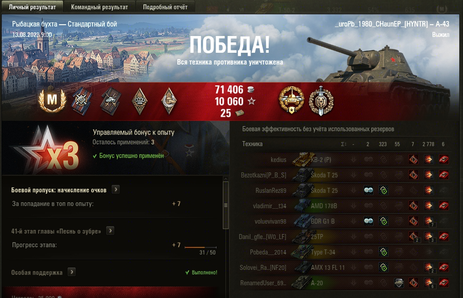 РЫБАЦКАЯ БУХТА МАСТЕР на А-43 ОПЫТ: 1341 СУММАРНЫЙ УРОН: 3101 медали ВОИН и ОСНОВНОЙ КАЛИБР