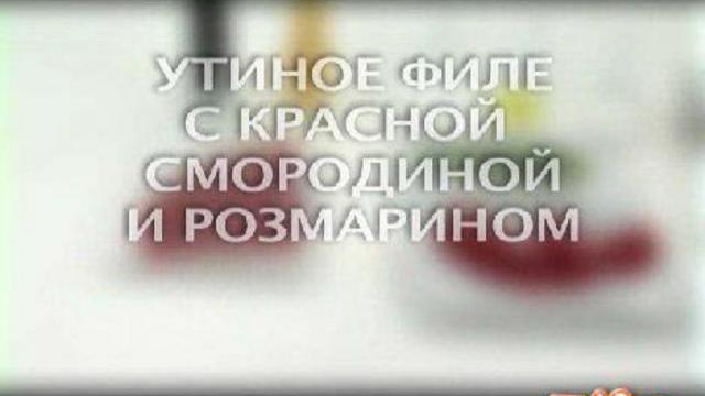 Утиное филе с красной смородиной и розмарином Рецепт вкусной утки с красной смородиной и розмарином. Утиное филе, бальзамический уксус, мясной бульон, сахар, растительное масло, крахмал, перец, соль, лук, розмарин, красная смородина.