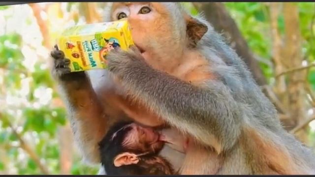 Чем заняты макака с новорожденным ребёнком в первый день появления последнего на 1000036425.mp4