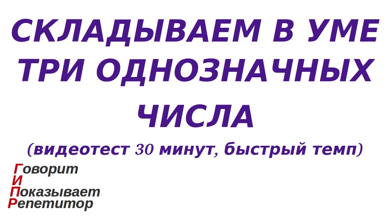 ГИПР - Складываем в уме три однозначных числа, видеотест 30 минут, быстрый темп