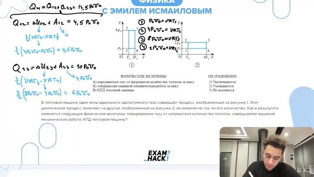 В тепловой машине один моль идеального одноатомного газа совершает процесс, изображенный на - №24161