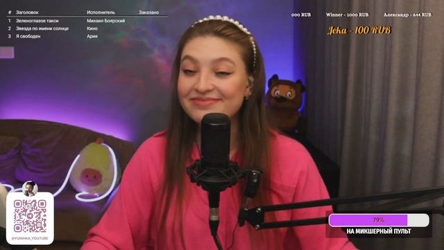 Привет, дорогой зритель! Меня зовут Юля, и я очень рада тебя видеть здесь на моем канале) Сегодня я провожу прямую трансляцию и поэтому прошу Тебя поддержать меня ну и конечно же петь песни вместе со мной Ссылка на донат ИЛИ если вы хотите увидеть свое сообщение на экране - https://www.donationalerts.com/r/yunihka Если просто хотите поддержать мое творчество номер карты СБЕР: 4276550062989176 Заказ песни вне очереди 100 р. ЧТО Я МОГУ СПЕТЬ ДЛЯ ТЕБЯ смотри тут https://disk.yandex.ru/i/YTq-QLQ9VLuGvA https://www.streamersonglist.com/t/yliannohka/songs?f=New Вы так же можете получить сигну написав в чат "ХОЧУ СИГНУ" и забирать ее в телеграмме Так же сигна делается автоматически всем, кто отправил донат Хочу сказать огромное СПАСИБО всем донатерам и просто случайным зрителям! Я надеюсь Вам все понравится ❤️ ИЩИТЕ МЕНЯ ЗДЕСЬ: инстаграм (запрещен в РФ): https://www.instagram.com/yunihka/ (@yunihka) вк: https://vk.com/yunihka Телеграмм: https://t.me/yunihka_youtube #стрим#караоке#разговоры#живойзвук#вокал#живойвокал#поем#петь#музыка#поемкараоке#петькараоке#cover#music#стрим#прямойэфир#караоке Не забудь поставить пальчик вверх а я для тебя сделала тайм коды ❤️ 1. 00:00 Заставка 2. 06:11 Начало стрима 3. 10:41 - 13:45 Jazzdauren - Дарите женщинам цветы 4. 22:51 - 28:10 Михаил Боярский - Спасибо родная ❤️ 5. 35:27 - 39:41 Игорь Тальков - Чистые пруды 6. 48:28 - 53:06 Слот - Круги на воде 7. 1:01:47 - 1:05:34 Валерий Меладзе - Сэра 8. 1:09:04 - 1:13:10 Константин Легостаев - Мы с тобой улетаем ❤️ 9. 1:17:16 - 1:19:59 Моя Мишель - Ветер меняет направление 10. 1:22:55 - 1:27:50 Михаил Боярский - Зеленоглазое такси 11. 1:37:51 - 1:40:42 Кино - Звезда по имени солнце ☀️ 12. 1:44:52 - 1:51:17 Ария - Я свободен 13. 2:02:48 - 2:07:25 Bryan Adams, Rod Stewart, Sting - All For Love 14. 2:12:04 - 2:16:43 Веселые Ребята - Розовые розы 15. 2:23:19 - 2:25:47 Амирчик - Либо люби 16. 2:29:17 - 2:32:51 Николай Носков - На меньшее я не согласен 17. 2:36:07 - 2:39:54 Roxette - Listen to your heart 18. 2:42:56 - 2:46:21 LX-24 - Уголек 19. 2:48:01 - 2:53:09 Би-2, Юлия Чечерина - Мой рок н ролл