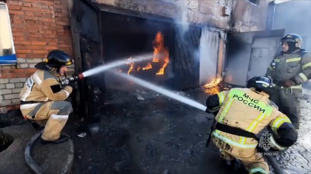 Пожар в гаражном боксе на территории трамвайно-троллейбусного депо в Хабаровске