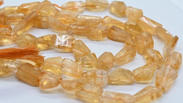 •Бусины из натурального камня цитрин в форме галтовки с гранями. •Количество бусин: 18 ± 3шт. •Размер бусин: 10*15мм ± 3мм. •На поверхности камня допустимо присутствие природных неровностей и микротрещин. •Вес в наименовании указан минимальный. •Цена за 1 нитку. Ранее вы смотрели