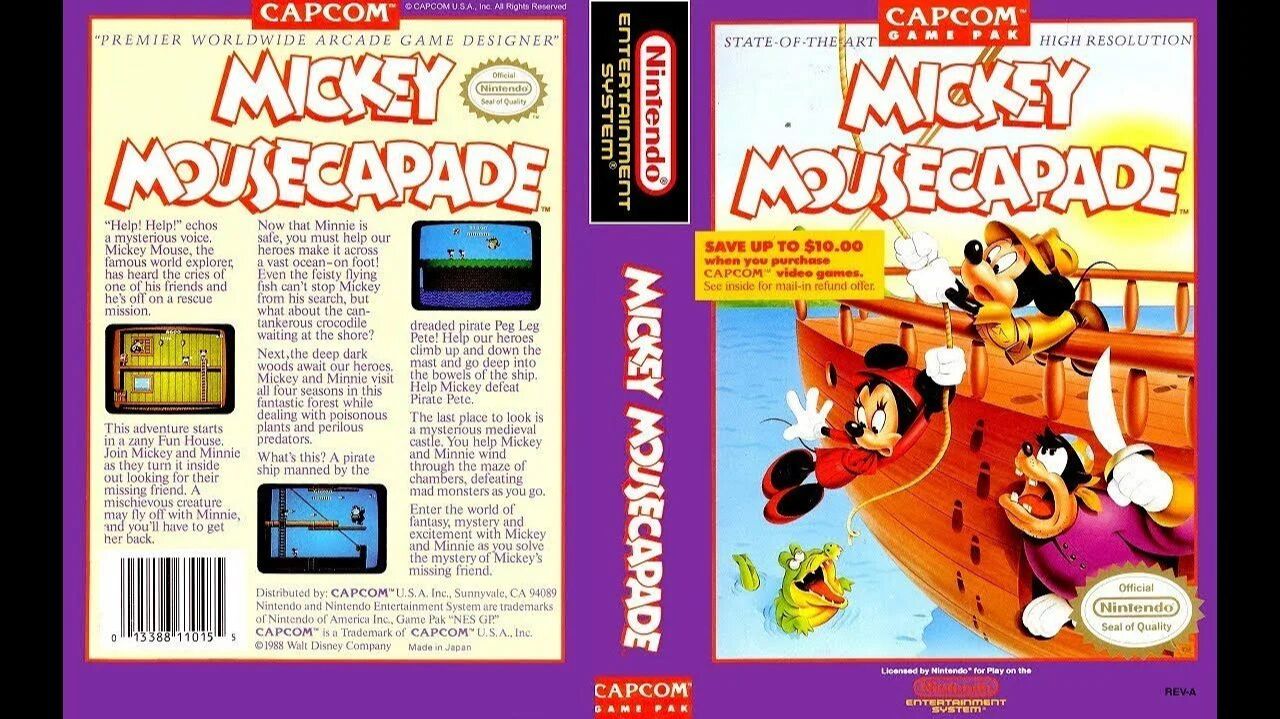 Забавное творение Hudson Soft про Микки Мауса и его подругу Минни. Мышата путешествуют по сказочным местам, знакомым нам по "Алисе в стране чудес" и "Питеру Пэну". Вы играете за Микки Мауса, а Минни, управляемая компьютером, ходит за вами (хорошо, что враги ее не бьют). В начале игры нужно найти оружие для самого Микки и для Минни, а потом смело бить врагов. В качестве боссов в японской версии выступают персонажи из диснеевской "Алисы" вместе с Джеймсом Крюком. В американском варианте вместо них будут другие герои Диснея. Геймплей далек от совершенства - часто враги атакуют так, что избежать их ударов невозможно. Тем не менее, в произведение Hudson интересно и увлекательно играть.