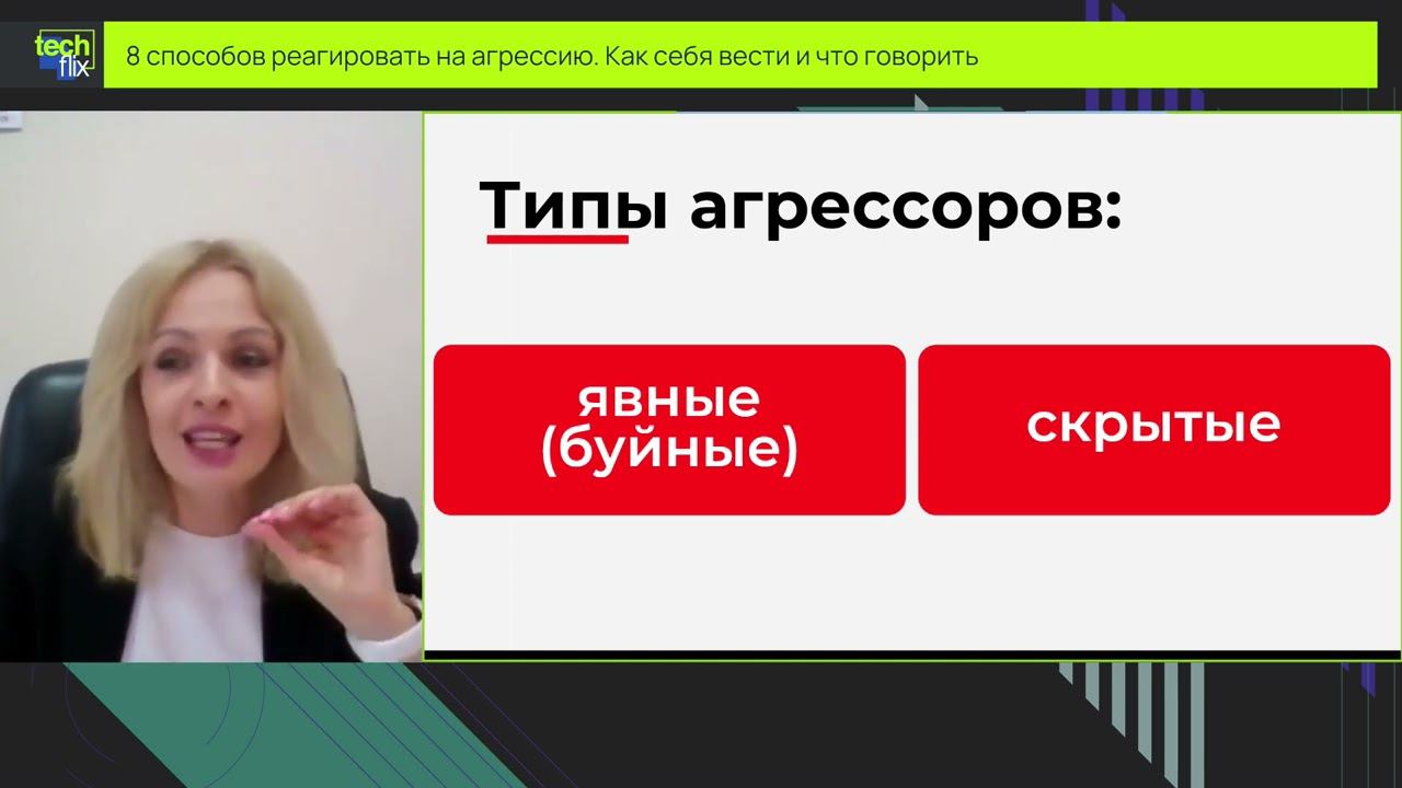 На мероприятии обсудим: -Шкала эмоциональных тонов. Что это и как влияет на эффективность работы в коллективе -Эмоциональный порыв ответа на агрессию. Плюсы и минусы -Когда на агрессию нужно отвечать, а когда нет -Как не перевести агрессию в конфликт -8 способов реакции на агрессию Спикер - Анна Ефремова -Тренер-эксперт по уверенной речи -Руководитель филиала Всероссийской государственной телерадиокомпании -Журналист, телеведущая, сценарист, автор собственных ТВ-проектов -Маркетолог -Бизнес-тренер подразделения Росатом -Спикер Ассоциации Спикеров Санкт-Петербурга -Учредитель онлайн-школы эффективных коммуникаций Speech Challenge -Руководитель ивент-агентства (Лучшее агентство региона) -Специалист в области практической психологии личности в сфере межличностных отношений бизнеса, кризисной психолог -Ведущая корпоративных тренингов и мероприятий -Преподаватель Финансового Университета при Правительстве РФ Специализация: -Консалтинг -Подготовка презентаций -Эффективные коммуникации -Публичные выступления и ораторское мастерство -Режиссура событий и креатив -Событийный маркетинг -Антистрессовое управление -Корпоративные тренинги Профессиональный опыт: -Высшее филологическое и психологическое образование (красный диплом) -МВА Американского университета Touro (красный диплом) -17 лет карьеры на ТВ -10 лет в кадре -Награждена Почетной грамотой ВГТРК -10 лет управленческого опыта на позициях топ-менеджмента -7 лет предпринимательского опыта