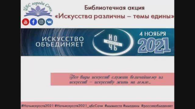 В 2021 году всероссийская акция «Ночь искусств» приурочена ко Дню народного единства и пройдет 4 ноября. «Неограниченные возможности» (творческие работы читателей – инвалидов) – так называется выставка, подготовленная сотрудниками Отдела нестационарных форм обслуживания Центральной городской библиотеки города Сочи. Отдел много лет работает с организациями, объединяющими людей с ограниченными возможностями здоровья: «Возрождение», «Стоик», «Прометей», Общество слепых. Сотрудники отдела обслуживает читателей – инвалидов на дому, и как форму реабилитации используют привлечение их к творчеству и участию в выставках. Сегодняшнюю экспозицию представляет главный библиотекарь Отдела нестационарных форм обслуживания Центральной городской библиотеки города Сочи Людмила Грицаенко. Все права на использованные материалы сохраняются за правообладателями. 4 ноября 2021 года. https://library-sochi.ru/ #неограниченныевозможности #ДеньНародногоЕдинства #ДеньвоинскойславыРоссии #мыедины #Россияобъединяет #мывместе #4ноября_ДеньНародногоЕдинства #праздникДеньНародногоЕдинства #Ночьискусств #Ночьискусств2021 #Ночьискусств2021_цбсСочи #центральнаягородскаябиблиотекаСочи #БиблиотеканаЧайковского #онфоцгбСочи #библиотекиСочивонлайнформате #культурадляшкольников_цбсСочи #культурадляшкольников2021 #читаемсудовольствием #КультураСочионлайн #читаемсинтересом #времячитать_цбсСочи #читаемдетям #читаемдома #культураРФ #культураСочи #Культура_Кубани #цбсСочи #библиотекиРоссии #детскиебиблиотекиСочи #библиотекиСочи #Библиотеки_Кубани #читатьмодно #чтопочитать #книголюб #времячитать #читаем #стихи #книга #читайипомни #мыслужимкниге #библиотекивонлайнформате_цбсСочи