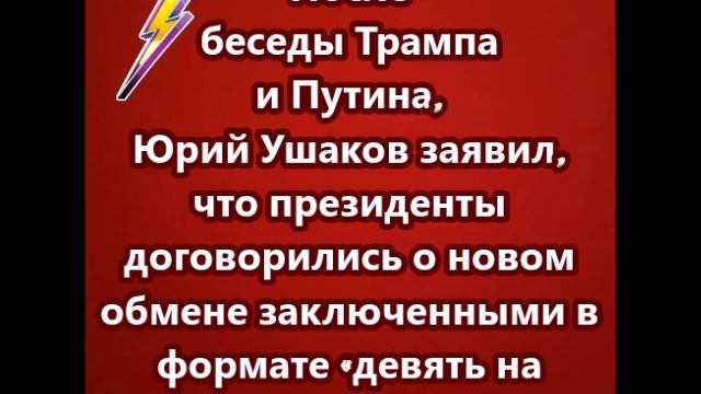 Ушаков заявил, что президенты договорились о новом обмене заключенными в формате «девять на девять человек»