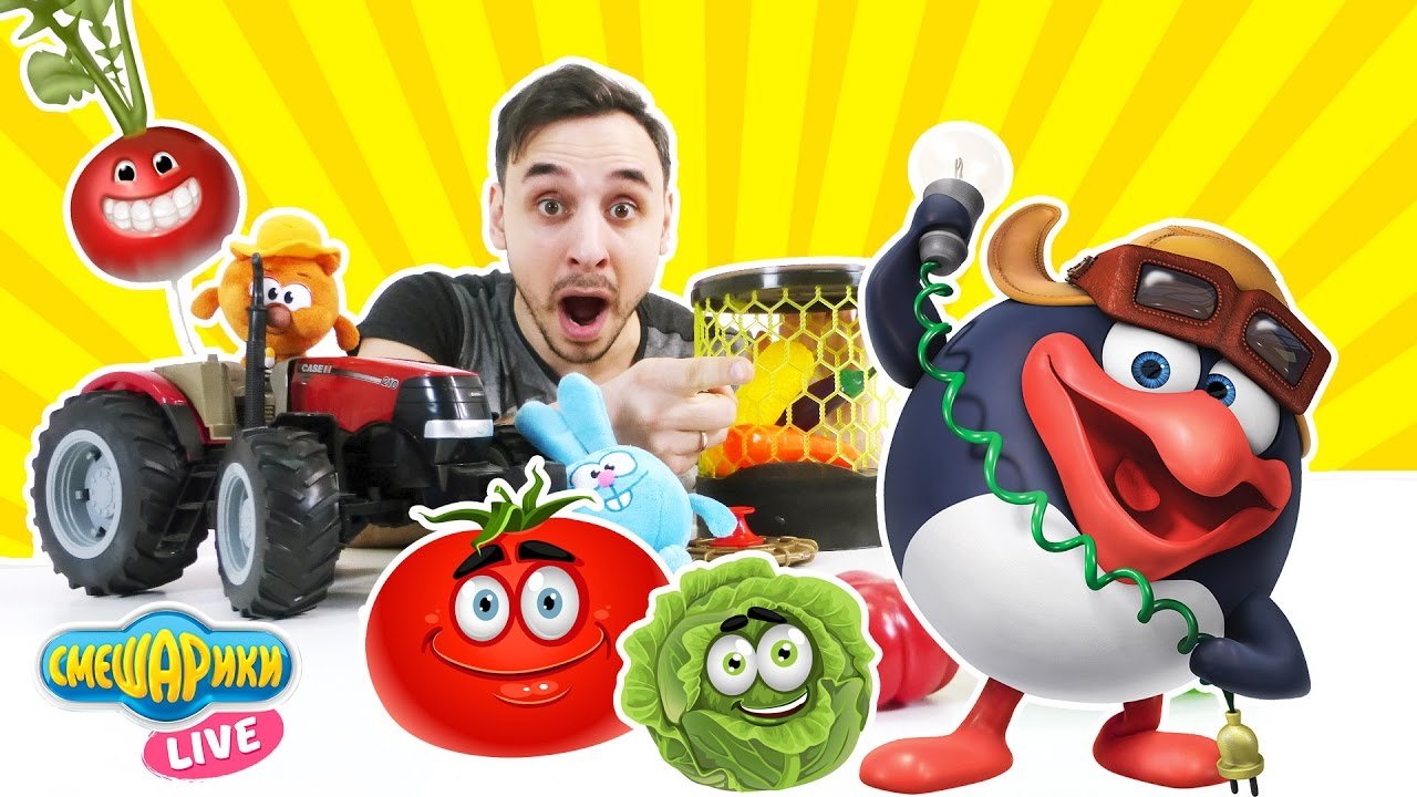 Сегодня Папа Роб и Смешарики Крош, Пин и Копатыч будут тестировать новое изобретение Пина! Это трансмодификатор овощей! С его помощью можно увеличить их рост! Но Папа Роб случайно нажал не ту кнопку, и овощи превратились в мутантов! Смотри наше новое видео для детей и скорее узнай, чем все закончится! Смогут ли овощи мутанты победить друзей! Больше видео на канале Смешарики Live: https://www.youtube.com/channel/UCy15c4beE539pcPFt4-UrHg/?sub_confirmation=1 Играй с машинками на канале АЛЕКС ГАРАЖ! https://www.youtube.com/channel/UCMaKEYt8gUz4fX95mGtHIXg/?sub_confirmation=1 Раскрашивай машинки вместе с Мишкой на канале Мишкины Раскраски: https://www.youtube.com/channel/UC34obbz1gyENttS5B0ByglA?sub_confirmation=1 Все суперзлодеи ждут тебя на канале Лига Злодеев! https://www.youtube.com/channel/UCF0KkwGrn4eFvl24W5bbjPg/?sub_confirmation=1 Смотрите нас на Фейсбуке! https://www.facebook.com/4ScreensShow Присоединяйтесь к нам ВКонтакте! https://vk.com/club132423271 Следите за нами в Твиттере! https://twitter.com/4Screens_Studio Посети наш Instagram! https://www.instagram.com/4screensstudio/