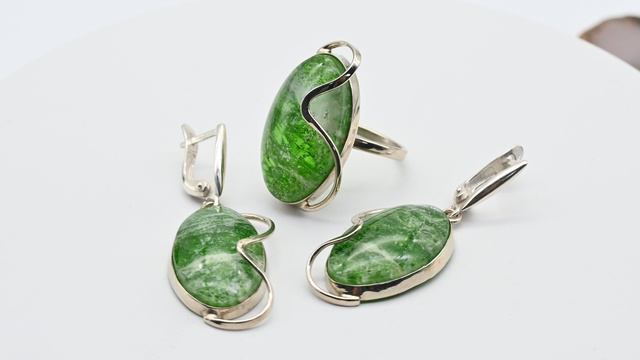 •Авторское украшение ручной работы выполнено в технике "Дуплет". •Камни установлены в оправу из ювелирного сплава - нейзильбер. •Форма и рисунок камня никогда не повторяются, что делает данное изделие единственным в своем роде. •Габарит кольца 19*29мм, серьги: 18*30мм., вес 11,1 г •Швензы изготовлены из серебра проба отсутствует. •Указаны габариты серьги без швензы. Цена: 7 623 руб. https://radugakamnya.ru/catalog/kollektsii_ukrasheniy/kollektsiya_florentsiya/komplekty_3/koltso_i_sergi_khromdiopsid_pod_gornym_khrustalem_razmer_18_5-599907/