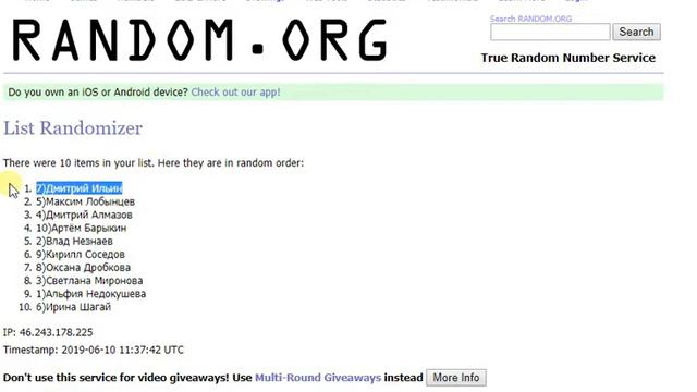 Розыгрыш 10 06 19