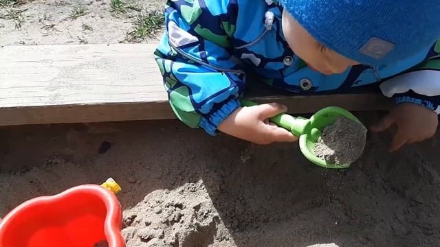 Максим пробует песок