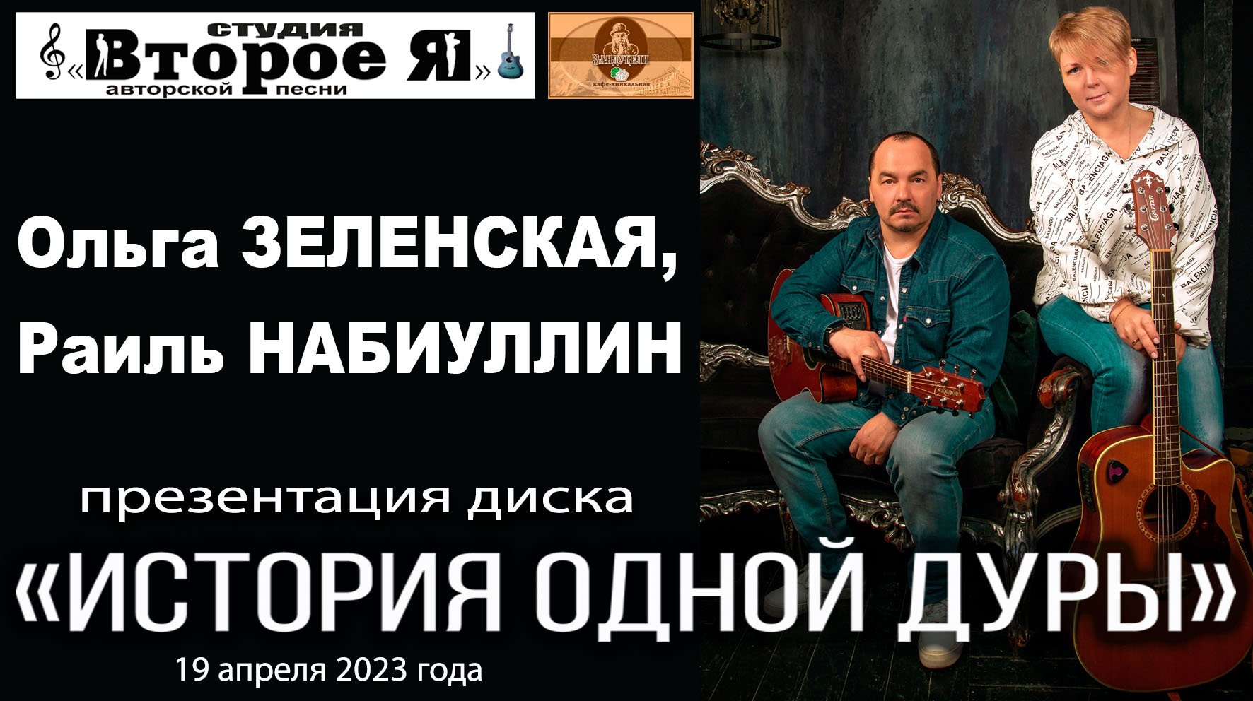 Презентация альбома автора-исполнителя Ольги Зеленской. При участии Раиля Набиуллина. Москва, кафе «Зандукели», 19 апреля 2023 года. Продолжительность – 1 час 39 минут.