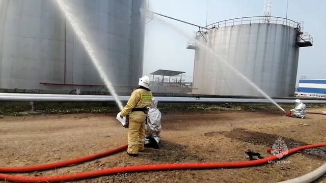 Для повышения мастерства огнеборцев договорного подразделения, обеспечивающего охрану пожарной безопасности на объекте топливной компании, и сотрудников Ванинского пожарно-спасательного гарнизона на территории резервуарного парка хранения нефтепродуктов прошло пожарно-тактическое учение. Согласно вводной, в хранилище произошла разгерметизация одной из емкостей с последующим возгоранием. В этой обстановке дежурному персоналу предприятия необходимо было оперативно провести оповещение и эвакуацию работников из опасной зоны. Первыми на вызов прибыли расчеты договорного подразделения федеральной противопожарной службы, которое находится непосредственно на объекте. Уточнив информацию у специалистов, они оперативно приступили к охлаждению стенок пострадавшего резервуара. Прибывающие на место дополнительные силы также незамедлительно провели боевое развертывание и установились на защиту рядом стоящих емкостей. Полностью ликвидировать условный огонь удалось с применением пенной атаки. Её провели как с помощью ручных стволов, так и подавая огнегасящую жидкость сверху с коленчатого пеноподъемника. На выполнение всех поставленных задач потребовалось меньше часа.