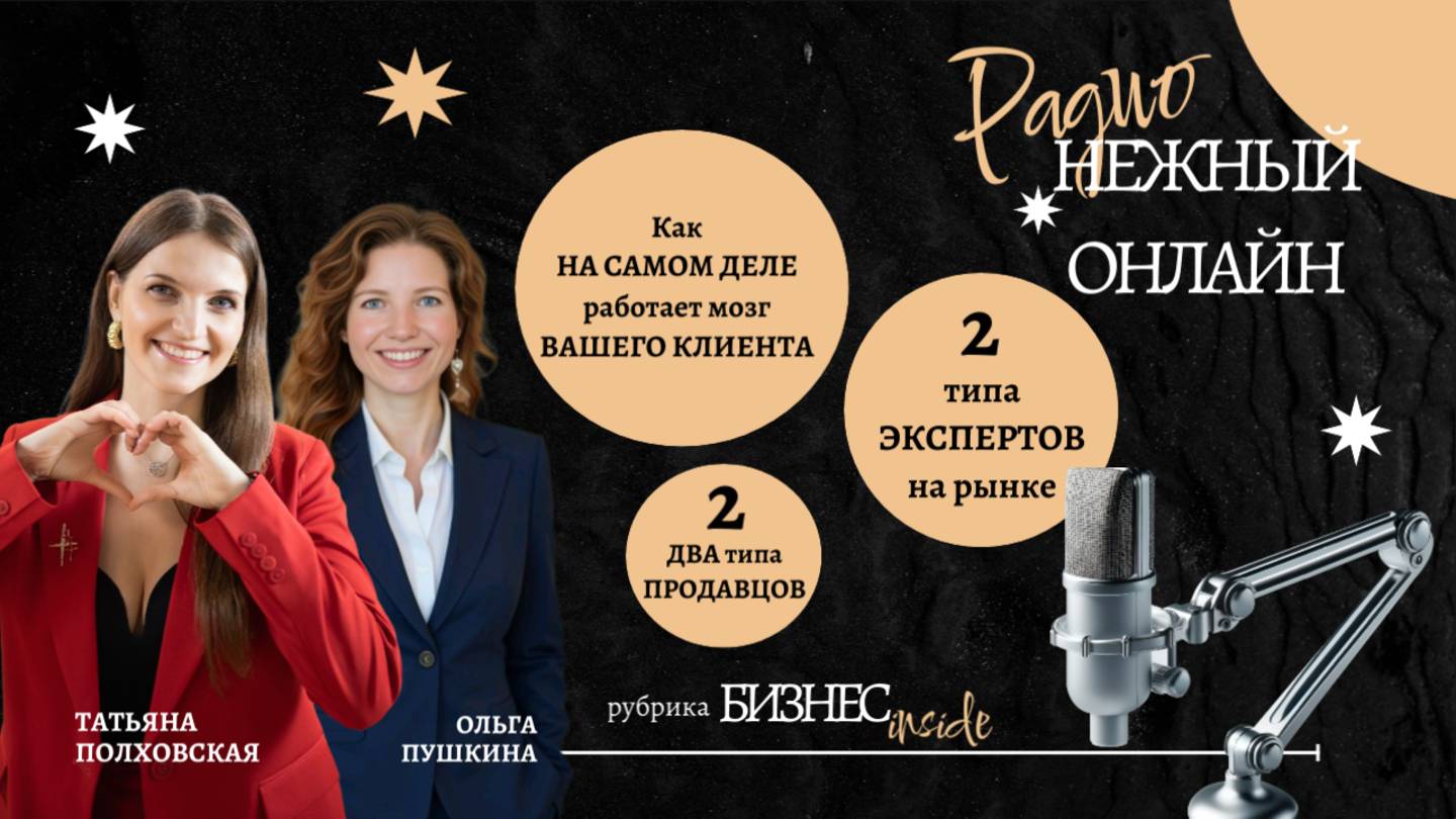 - какой тип экспертов НИКОГДА не будет успешным на рынке и почему; - как НА САМОМ ДЕЛЕ устроен мозг вашего клиента и - почему инфоцыгане ЗАРАБАТЫВАЮТ БОЛЬШЕ, чем вы УЗНАЙТЕ, КАК С ПОМОЩЬЮ РАДИО “НЕЖНЫЙ ОНЛАЙН” СТАТЬ УЗНАВАЕМЫМ ЭКСПЕРТОМ, КОТОРОМУ ДОВЕРЯЮТ