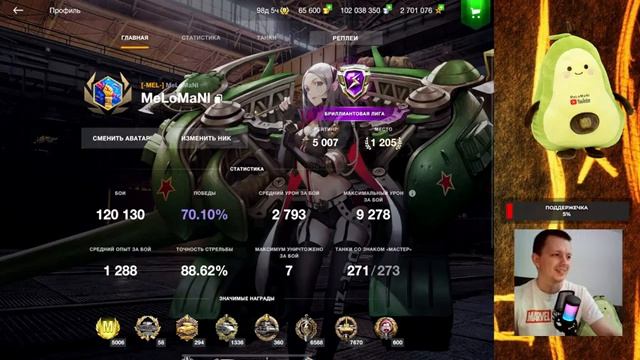 Всем привет, с вами MeLoMaN!? Всем привет, на связи MeLoMaNl!? Как вы могли заметить, вчера вышло обновление 10.0! А вместе с ним - новые чешские тяжелые танки!? Я, конечно, не намерен оставаться в стороне и жажду попробовать бронированный "гуляш" с новой механикой!? Особенностью исследования новых машин в рамках стрима станет уровень, с которого мы начнем: традиционно интерес представлял только танк 10-го уровня, реже - 9-го. Однако, сегодня мы стартуем с... 8-ки!? Почему? Насколько мне известно, не у всех есть достаточное количество свободного опыта для моментального исследования 10-ки. 8-ой уровень - один из самых популярных в игре и многие игроки начинают прокачку именно с него.☝ В общем, жду всех! Есть ощущение, что чехи окажутся не так просты, как кажется...? Поэтому мне нужна ваша поддержка!? Приходите, комментируйте, ставьте лайки и наслаждайтесь зрелищем!??? Сегодня (как и всегда) мне очень важна ваша поддержка!✨ https://www.youtube.com/watch?v=ob9vCYZi7V4 РЕКОМЕНДУЮ К ПРОСМОТРУ, ДАБЫ ПРОСТО ПОСМЕЯТЬСЯ) А это так просто, если у тебя 49.99% по аккаунту, то ты можешь кинуть взвод и мы постараемся апнуть тебе 50%) не сегодня ?НЕМНОГО ИНФОРМАЦИИ О СЕБЕ ? ?зовут Серёга, 13.01.1994 гр., живу в г.Пермь, Россия. ?начал играть в танки в марте 2019 года, был 40% рачком, но и сейчас не забываю раковать. ?играю на РУ регионе (Lesta), так же имеется аккаунт на Европе (WG), но я там редко бываю. ?игровые устройства: Honor 7A pro - 10к боев, Honor 8x Max - 20к боев, Honor Pad V6 - 80к боев+- и не так давно был приобретен Ipad Pro 11 2022 ? теперь катаем с него) ?мой любимый танк - Sheridan, но есть ещё куча танков, на которых мне нравится играть. ?статистка моего профиля - http://wblitz.net/stat/ru/MeLoMaNl ?Через донат Вы можете ? ? сыграть 3 боя с тобой во взводе - 150 р. ? отыграть со связью 5 боев (рандом) - 250 ? разобрать Ваш бой на стриме - 200 р. ? сыграть бой на Вашем танке - 50 р. (если он есть у меня в ангаре, если нет выберите другой) ? по поводу челленджей, это конечно круто, надеюсь они будут выполнимы) ?Сбора средств как такового нет TROVO - https://trovo.live/MeLoMaNl ДС КЛАНА MEL - https://discord.gg/8a9g97FxCN Группа ВК - https://vk.com/club210420076 Если хочешь к нам в беседу VK, пиши в лс - https://vk.com/melomanl Плохо слышно? Сделайте погромче) Поддержка канала, вроде как музыку можно ещё заказать и клип https://www.donationalerts.com/r/melomanl Напрямую - 4276 4900 3081 3010 (МВ) #wotblitz #блиц #blitz #вотблиц #MeLoMaNl