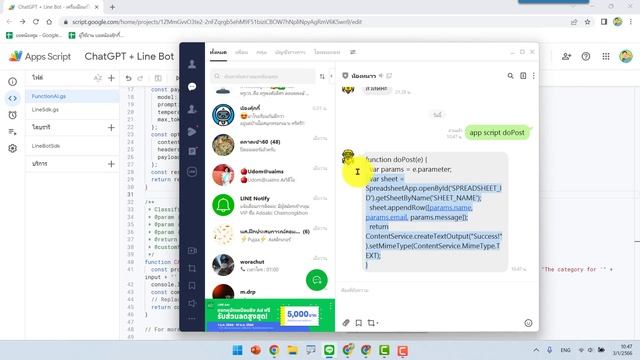 ตัวอย่างไลน์แชตบอตตอบคำถาม ที่พัฒนาด้วย chatGPT