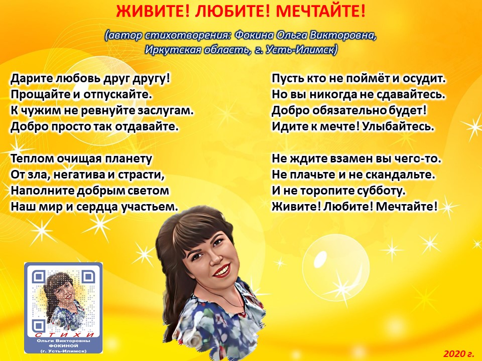 Ольга Фокина (Усть-Илимск) - ЖИВИТЕ! ЛЮБИТЕ! МЕЧТАЙТЕ!