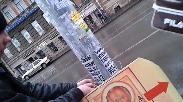 Ликвидация рекламных щитов секты РПАЦ. 15 марта 2014 год.Санкт-Петербург,Средний проспект,рядом со станцией метро Василеостровская. Данные рекламные щиты были отнесены в один из православных храмов для дальнейшей утилизации. Ссылка: http://anton-raevsky.livejournal.com/34819.html