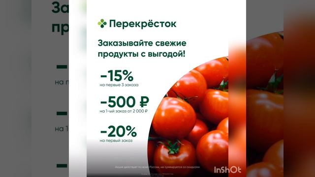 Доставка от 60 минут и огромный ассортимент товаров в Перекрестке ? Заказывай товары на сайте и применяй один из промокодов: ? X2ZCWH — скидка 15% на 3 первых заказа. ? 3KXXGE — скидка 20% на первый заказ ? LFUHPT — скидка 500₽ на первый заказ от 2000₽ ❗️Акция доступна для новых пользователей